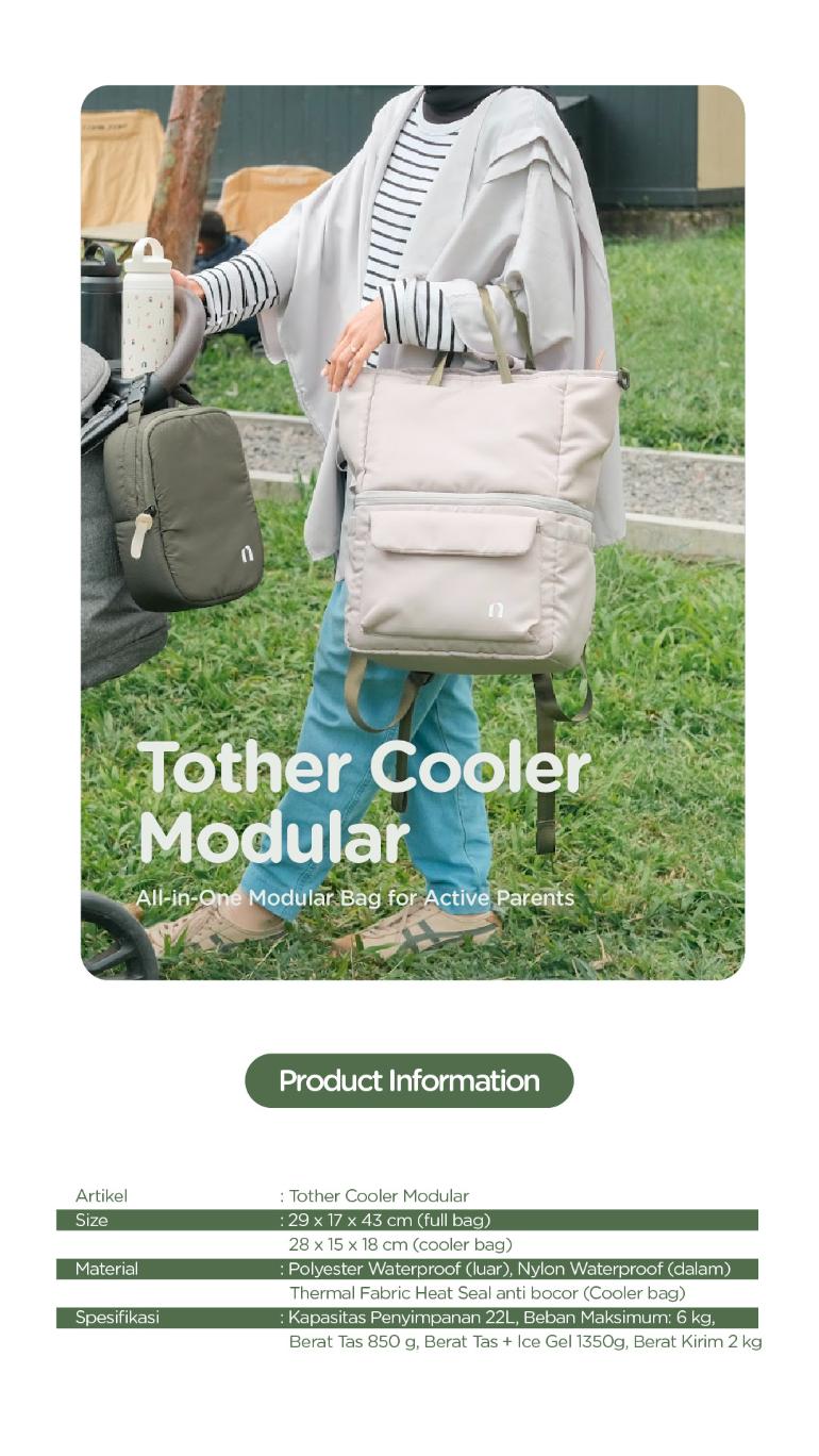 Tother Cooler Modular merupakan tas diaper, cooler bag dengan sekat laptop berukuran medium 22L yang paling praktis dan fungsional dari Nertur. Tas ini memiliki 3 mode pemakaian, backpack, slingbag dan handbag dengan dimensi medium tetapi berkapasitas lebih besar.